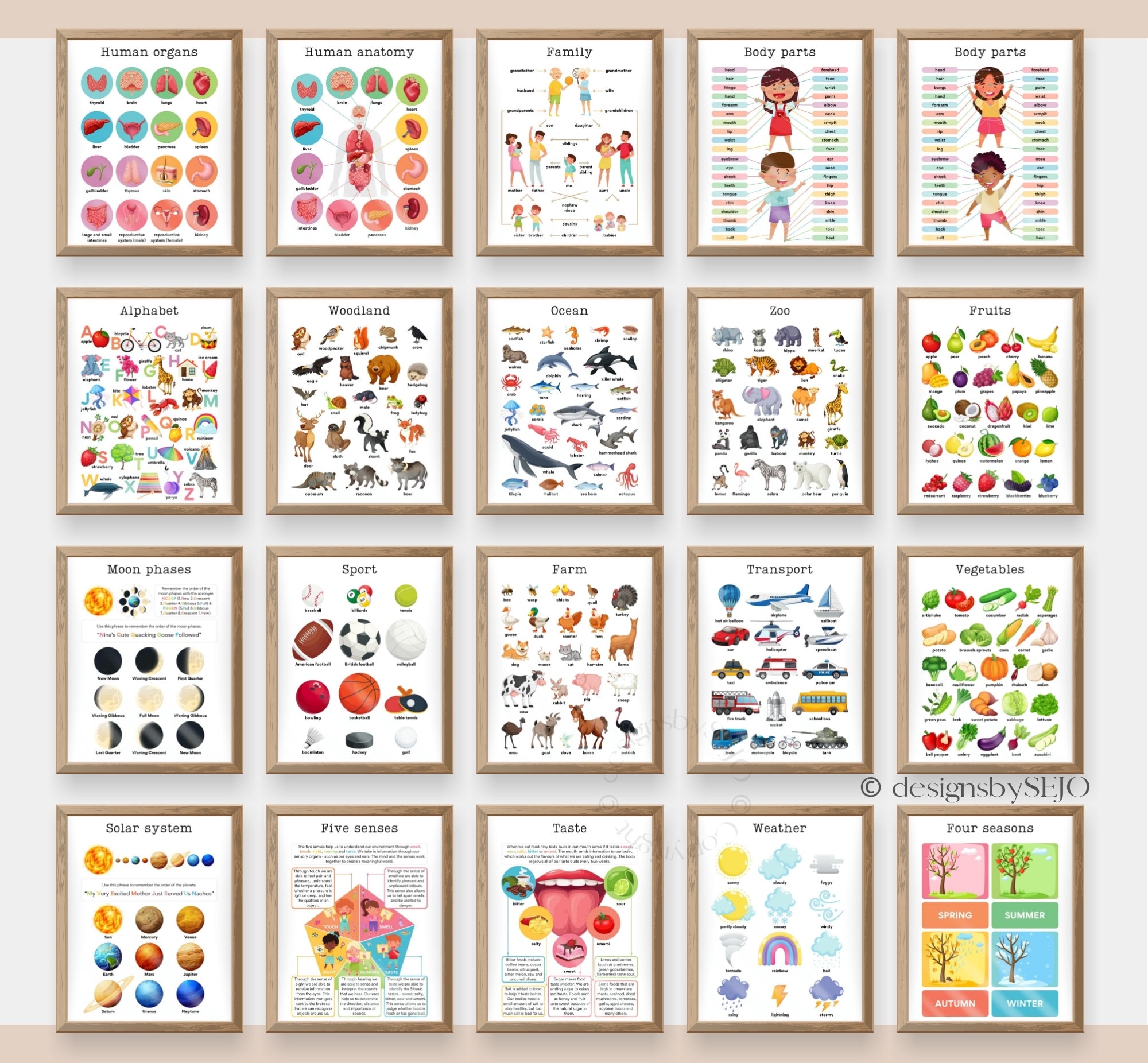 Set of 101 Educational Posters, Colourful Homeschool Learning Prints, Classroom Posters, Learning Posters, Alphabet, Digital Files