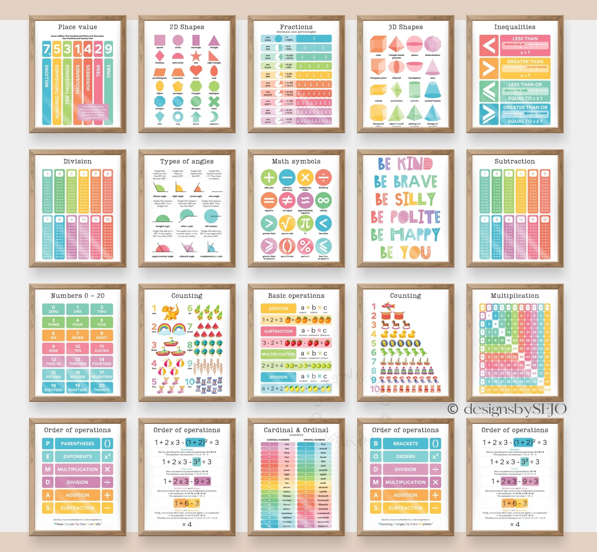 - Our posters accommodate all ages of children up to the age of 11. Where one poster will be very basic (counting 0-10), another poster will cover BODMAS and PEMDAS. This allows parents and schoolteachers to keep using this pack, as their children grow up, without the need to buy new packs.